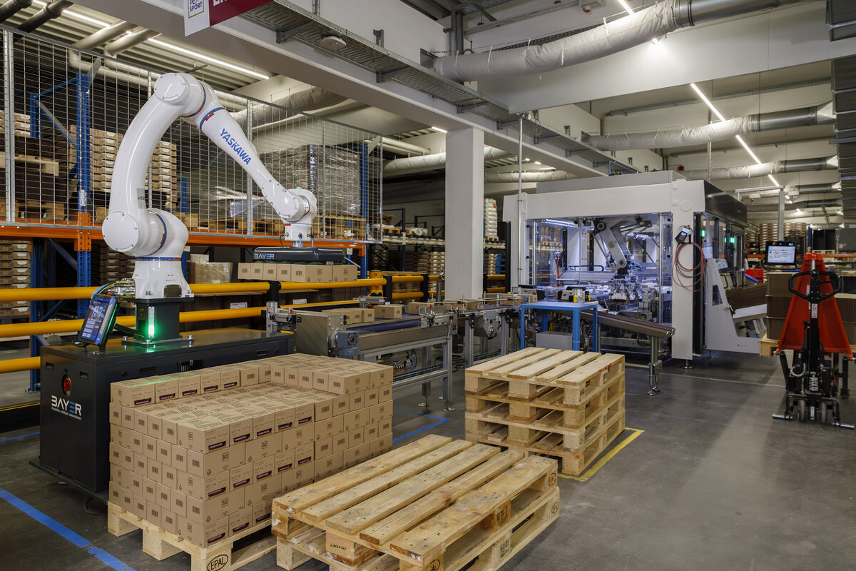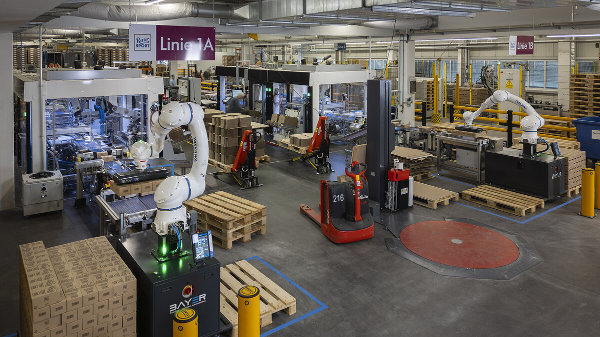 Palettizing systems from Bayer with Yaskawa Cobots at chocolate manufacturer Ritter